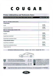 Eine umfangreiche Palette an nationalen und internationalen Prospekten sowie Broschüren, Sonder-Unterlagen und Zubehörkatalogen geben einen Einblick über die große Bandbreite, die seinerzeit für den Ford Cougar vorgehalten wurden. Einiges war auch nicht für jedermann erhältlich.